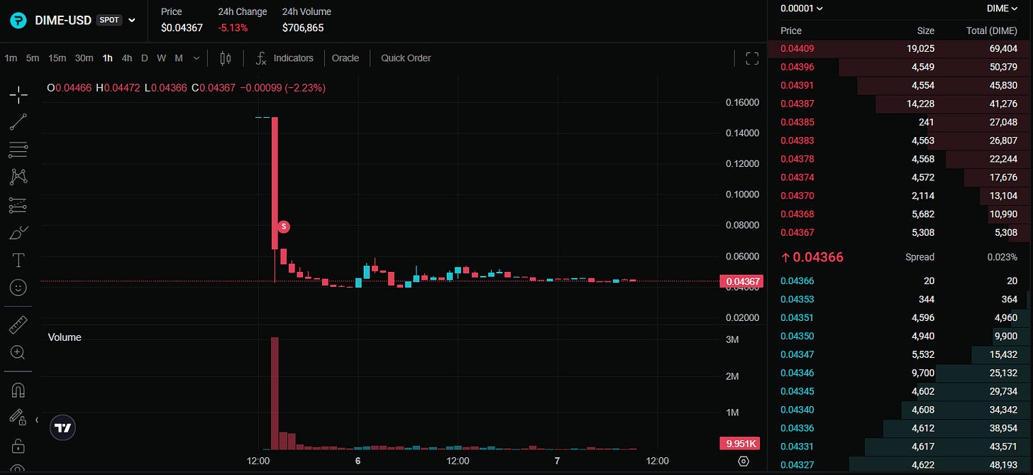 🫠 Paradex… 50M FDV. Bon bah voilà, les tokens sont à claim sur la p’tite image “$DIME” sur le DEX, puis vendables sur leur spot. RIP. Même avec 25% de la supply en airdrop on se retrouve avec des cacahuètes. (🔗 Lien)